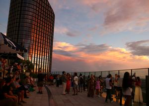 (251124) -- BRISBANE, 24 noviembre, 2025 (Xinhua) -- Imagen del 23 de noviembre de 2025 de personas disfrutando del atardecer...
