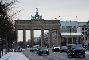 (251124) -- BERLIN, 24 noviembre, 2025 (Xinhua) -- Vehículos circulan frente a la Puerta de Brandeburgo, en Berlín, Alemania, el...