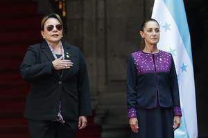 (251125) -- CIUDAD DE MEXICO, 25 noviembre, 2025 (Xinhua) -- La presidenta mexicana, Claudia Sheinbaum (d), posa junto a la...