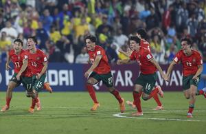 (251125) -- DOHA, 25 noviembre, 2025 (Xinhua) -- Imagen del 24 de noviembre de 2025 de jugadores de Portugal festejando...