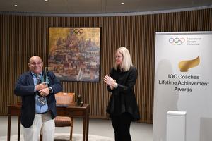 (251125) -- LAUSANA, 25 noviembre, 2025 (Xinhua) -- Imagen del 24 de noviembre de 2025 de la entrenadora china de...