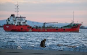 (251125) -- ESTAMBUL, 25 noviembre, 2025 (Xinhua) -- Un gato descansa a lo largo de la costa del mar de Mármara, con un barco anclado en las aguas cercanas, en Estambul, Turquía, el 25 de noviembre de 2025. El mar de Mármara es un mar interior que conecta el mar Negro y el mar Egeo a través de los estrechos del Bósforo y de los Dardanelos. (Xinhua/Liu Lei) (oa) (ah) (ce)