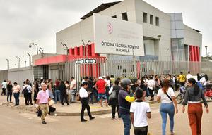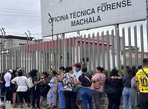 (251110) -- EL ORO, 10 noviembre, 2025 (Xinhua) -- Personas esperan por información de sus familiares después de los disturbios...