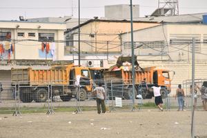(251110) -- EL ORO, 10 noviembre, 2025 (Xinhua) -- Una retroexcavadora y dos volcadoras trabajan en el perímetro del Centro...