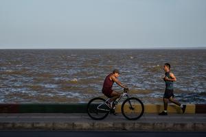 (251110) -- AMAPA, 10 noviembre, 2025 (Xinhua) -- Imagen del 9 de noviembre de 2025 de personas ejercitándose a lo...