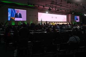 (251110) -- BELEM, 10 noviembre, 2025 (Xinhua) -- Personas asisten a la inauguración de la 30ª Conferencia de las Partes...