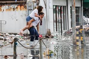 (251110) -- CIUDAD DE NAVOTAS, 10 noviembre, 2025 (Xinhua) -- Un hombre carga a una mujer en su espalda mientras...