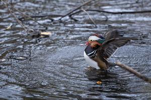 (251109) -- BERLIN, 9 noviembre, 2025 (Xinhua) -- Imagen del 8 de noviembre de 2025 de un pato mandarín visto...