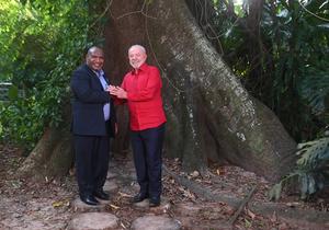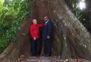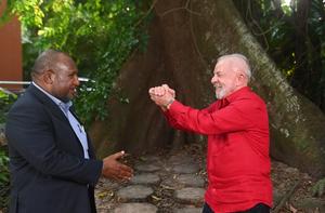 (251105) -- BELEM, 5 noviembre, 2025 (Xinhua) -- El presidente brasileño, Luiz Inácio Lula da Silva (d), y el primer...