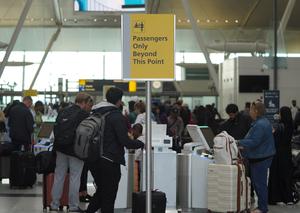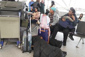 (251105) -- NUEVA YORK, 5 noviembre, 2025 (Xinhua) -- Viajeros son vistos en el área de registro del Aeropuerto Internacional...