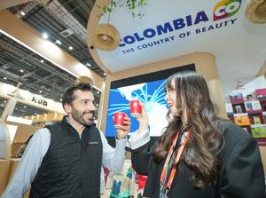 (251105) -- SHANGHAI, 5 noviembre, 2025 (Xinhua) -- Un expositor (i) y una periodista degustan café en el Pabellón de...
