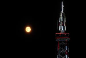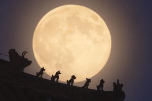 (251105) -- HARBIN, 5 noviembre, 2025 (Xinhua) -- Una luna llena es vista en Qiqihar, en la provincia de Heilongjiang,...