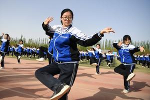 (251104) -- LANZHOU, 4 noviembre, 2025 (Xinhua) -- Imagen del 26 de abril de 2023 de estudiantes practicando calistenia incorporando...