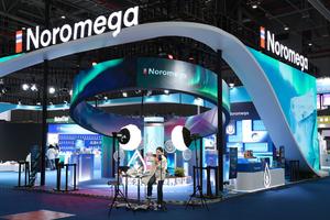 (251104) -- SHANGHAI, 4 noviembre, 2025 (Xinhua) -- Una trabajadora realiza una transmisión en vivo en el área de exposición...