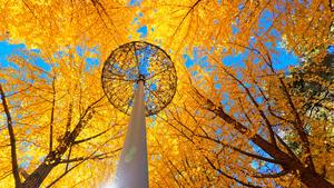(251104) -- BEIJING, 4 noviembre, 2025 (Xinhua) -- Un ciudadano hace ejercicio en un bosque de ginkgos, en la ciudad...