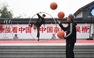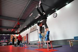 (251103) -- CANGZHOU, 3 noviembre, 2025 (Xinhua) -- Imagen del 28 de octubre de 2025 de un estudiante practicando acrobacias...