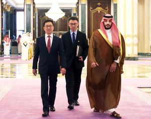 (251030) -- RIAD, 30 octubre, 2025 (Xinhua) -- El vicepresidente chino, Han Zheng, se reúne con el príncipe heredero y...