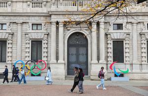 (251030) -- MILAN, 30 octubre, 2025 (Xinhua) -- Imagen del 29 de octubre de 2025 de personas caminando frente a...
