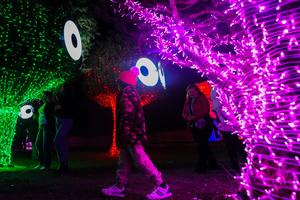 (251128) -- BOGOTA, 28 noviembre, 2025 (Xinhua) -- Imagen del 27 de noviembre de 2025 de personas asistiendo a la apertura del festival de luces interactivo Brilla Sueños, en Bogotá, capital de Colombia. El festival de luces interactivo Brilla Sueños, un recorrido de un kilómetro entre espacios temáticos, marca desde este jueves junto al estadio El Campín el inicio de la temporada de fin de año en Bogotá, la capital de Colombia. (Xinhua/Andrés Moreno) (am) (oa) (ra) (vf)