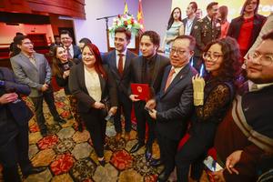 (251127) -- QUITO, 27 noviembre, 2025 (Xinhua) -- Imagen del 26 de noviembre de 2025 del embajador de China en Ecuador, Sun Xiangyang (3-d-frente), posando para fotografías junto a asistentes y becarios ecuatorianos durante el evento anual de "Cooperación en el Desarrollo de Recursos Humanos China-Ecuador 2025", en Quito, capital de Ecuador. La Embajada de China en Ecuador celebró el evento anual de "Cooperación en el Desarrollo de Recursos Humanos China-Ecuador 2025", mediante el cual jóvenes y funcionarios ecuatorianos accedieron a becas para estudios superiores y seminarios de corta duración en el país asiático. (Xinhua/Ricardo Landeta) (rl) (rtg) (ra) (vf)