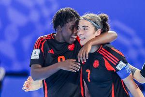 (251128) -- CIUDAD DE PASIG, 28 noviembre, 2025 (Xinhua) -- Jugadoras de Colombia festejan después de realizar una anotación durante el partido del grupo B entre Colombia y Tailandia, en la Copa Mundial Femenina de Futsal de la FIFA 2025, en la Ciudad de Pasig, Filipinas, el 28 de noviembre de 2025. (Xinhua/Rouelle Umali) (rtg) (ra) (ce)