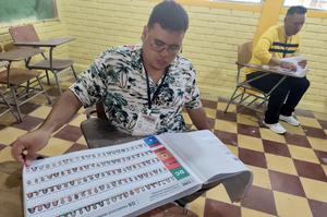 (251130) -- TEGUCIGALPA, 30 noviembre, 2025 (Xinhua) -- Un funcionario electoral trabaja en un colegio electoral, en Tegucigalpa, Honduras, el...