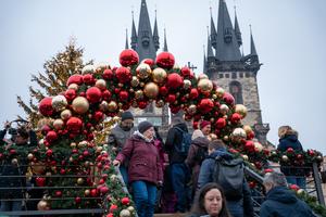 (251130) -- PRAGA, 30 noviembre, 2025 (Xinhua) -- Imagen del 29 de noviembre de 2025 de personas visitando un mercado navideño, en Praga, República Checa. El mercado navideño en la Ciudad Vieja de Praga abrió oficialmente el sábado, atrayendo a gran número de residentes y turistas. (Xinhua/Dana Kesnerova) (oa) (ah)