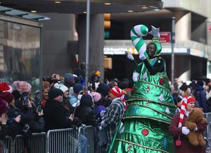 (251128) -- NUEVA YORK, 28 noviembre, 2025 (Xinhua) -- Imagen del 27 de noviembre de 2025 de un artista interactuando...