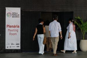 (251201) -- RIO DE JANEIRO, 1 diciembre, 2025 (Xinhua) -- Personas ingresan a una sala de reuniones durante la Primera Cumbre Popular del BRICS, en Río de Janeiro, Brasil, el 1 de diciembre de 2025. La Primera Cumbre Popular del BRICS comenzó el lunes en Río de Janeiro, Brasil, con el objetivo de articular la participación de la sociedad civil en la formulación de propuestas para fortalecer la cooperación del Sur Global dentro del bloque, compuesto por 11 economías emergentes. (Xinhua/Claudia Martini) (cm) (oa) (ah) (ce)