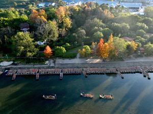 (251202) -- WUYISHAN, 2 diciembre, 2025 (Xinhua) -- Vista aérea tomada con un dron el 30 de noviembre de 2025 de un muelle del río Jiuqu, en el Parque Nacional Wuyishan, en la provincia de Fujian, en el sureste de China. (Xinhua/Jiang Kehong) (jg) (ra) (ce)