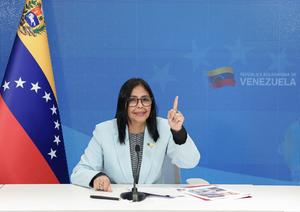 (251202) -- CARACAS, 2 diciembre, 2025 (Xinhua) -- Imagen proveída por la Vicepresidencia de Venezuela de la vicepresidenta venezolana, Delcy Rodríguez, hablando durante una conferencia de prensa, en Caracas, Venezuela, el 2 de diciembre de 2025. Un "tribunal estadounidense decidió definitivamente robar CITGO", la empresa petrolera venezolana asentada en Estados Unidos y filial de la estatal Petróleos de Venezuela, denunció el martes Rodríguez. (Xinhua/Vicepresidencia de Venezuela) (ms) (jg) (ra) (vf)