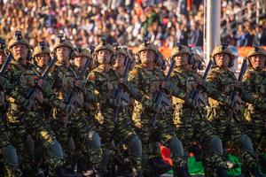 (251202) -- VIENTIAN, 2 diciembre, 2025 (Xinhua) -- Soldados laosianos participan en un desfile militar para conmemorar el 50º aniversario...