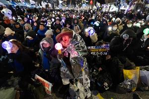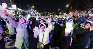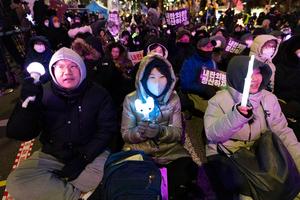 (251203) -- SEUL, 3 diciembre, 2025 (Xinhua) -- Personas se reúnen cerca de la Asamblea Nacional, en Seúl, República de...