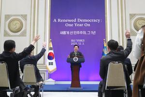 (251203) -- SEUL, 3 diciembre, 2025 (Xinhua) -- El presidente de República de Corea, Lee Jae Myung, habla en una...