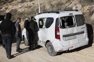 (251202) -- HEBRON, 2 diciembre, 2025 (Xinhua) -- Palestinos se reúnen alrededor del automóvil de Muhannad Tariq Mohammad Al-Zgheer, quien...