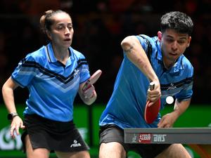 (251202) -- CHENGDU, 2 diciembre, 2025 (Xinhua) -- Nicolás Burgos/Paulina Vega (i), de Chile, compiten en el partido de dobles...