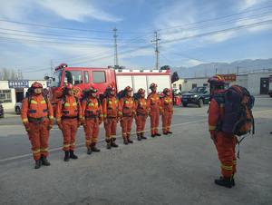 (251204) — KIZILSU KIRGIZ, 4 diciembre, 2025 (Xinhua) — Rescatistas se reúnen antes de dirigirse a las áreas afectadas por el terremoto, en el distrito de Akqi de la prefectura autónoma kirguís de Kizilsu, en la región autónoma uygur de Xinjiang, en el noroeste de China, el 4 de diciembre de 2025. Un terremoto de 6,0 grados de magnitud sacudió el distrito de Akqi en la prefectura autónoma kirguís de Kizilsu, en la región autónoma uygur de Xinjiang, ubicada en el noroeste de China, a las 15:44 del jueves (hora de Beijing), de acuerdo con el Centro de Redes Sismológicas de China. (Xinhua) (jg) (ah) (ce)