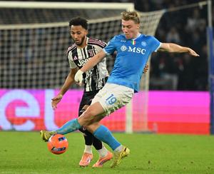 (251208) -- NAPOLES, 8 diciembre, 2025 (Xinhua) -- Imagen del 7 de diciembre de 2025 de Rasmus Hojlund (d), de...