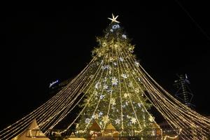 (251213) -- TIFLIS, 13 diciembre, 2025 (Xinhua) -- Imagen del 12 de diciembre de 2025 del árbol principal iluminado de...