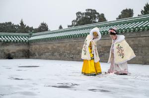 (251212) -- BEIJING, 12 diciembre, 2025 (Xinhua) -- Niños se divierten en el Templo del Cielo en medio de una...