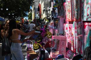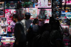 (251213) -- CARACAS, 13 diciembre, 2025 (Xinhua) -- Personas observan juguetes en un puesto callejero de ventas por la temporada...