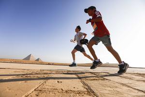 (251213) -- GIZA, 13 diciembre, 2025 (Xinhua) -- Corredores participan en el Medio Maratón de las Pirámides celebrado en el...
