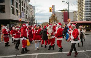 (251214) -- VANCOUVER, 14 diciembre, 2025 (Xinhua) -- Imagen del 13 de diciembre de 2025 de personas disfrazadas de Santa...
