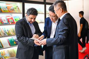 (251214) -- ESTAMBUL, 14 diciembre, 2025 (Xinhua) -- Imagen del 13 de diciembre de 2025 de dos editores chinos presentando...