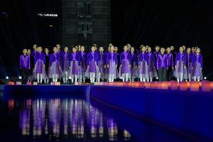 (251213) -- NANJING, 13 diciembre, 2025 (Xinhua) -- Estudiantes cantan durante una vigilia con velas encendidas en el Salón Conmemorativo...