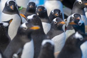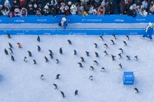 (251213) -- HARBIN, 13 diciembre, 2025 (Xinhua) -- Personas observan un evento de desfile de pingüinos en Harbin Polarland, en...