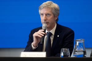 (251215) -- BUENOS AIRES, 15 diciembre, 2025 (Xinhua) -- El presidente del Banco Central de la República Argentina, Santiago Bausili, habla durante una conferencia de prensa, en la ciudad de Buenos Aires, capital de Argentina, el 15 de diciembre de 2025. (Xinhua/Martín Zabala) (mz) (oa) (ah) (vf)