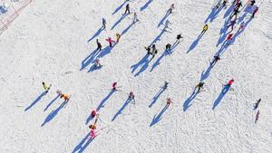 (251216) -- BEIJING, 16 diciembre, 2025 (Xinhua) -- Vista aérea tomada con un dron el 7 de diciembre de 2025 de turistas esquiando en la estación de esquí Yulongwan, en el distrito de Yutian, en la ciudad de Tangshan de la provincia de Hebei, en el norte de China. (Xinhua/Liu Mancang) (jg) (ra) (vf)