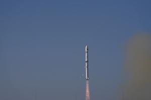 (251216) -- TAIYUAN, 16 diciembre, 2025 (Xinhua) -- Un cohete portador Gran Marcha-4B transportando el satélite Ziyuan III 04 despega...
