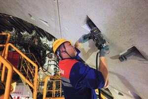 (251216) -- SHANGHAI, 16 diciembre, 2025 (Xinhua) -- Un trabajador aprieta un perno en el sitio de construcción del túnel...